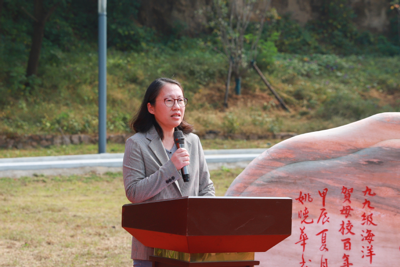 王锟校友代表捐赠班级发言。他表示在母校百年华诞之际,希望以石寄情,感恩母校的培养,祝福母校在新的百年征程中再创辉煌。
