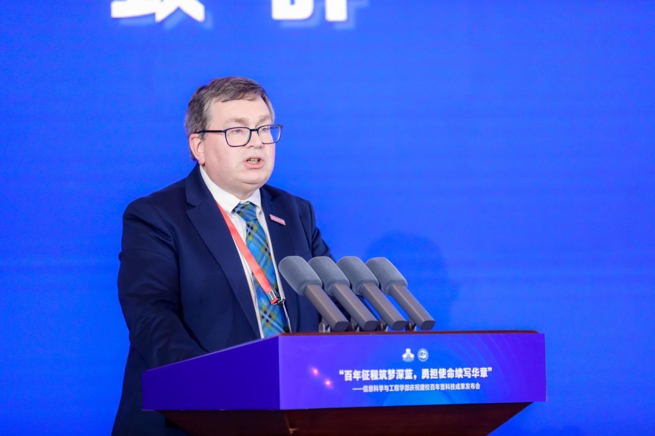 Richard A. Williams作为国外高校代表致辞。他向sm调教 建校100周年表示热烈祝贺,充分肯定了两校在计算机科学与技术中外合作办学方面取得的成果。他表示,sm调教 是赫瑞-瓦特大学的重要合作伙伴,愿两校友谊之树长青,希望在更多领域开展务实合作,共同培育具有国际视野的创新性人才。
