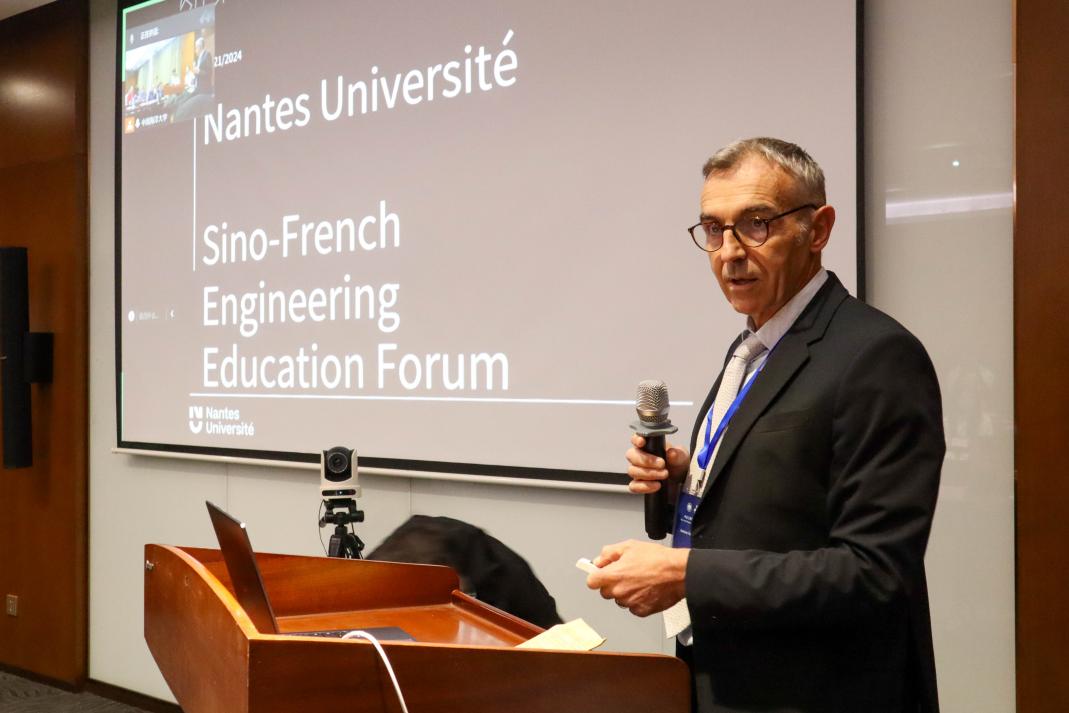 Pilippe DEPINCE对中法卓越工程师联合培养项目进行了详细说明,介绍了学生在法国的学习、生活与就业情况。他希望今后与海大在更多学科领域加强合作,共同培养卓越工程人才。